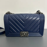 The Chanel Boy Bag in navy quilted leather exemplifies timeless elegance and craftsmanship. Featuring signature quilted calfskin, this bag offers durability with a refined texture. Its compact yet spacious design includes a distinctive front clasp, making it a versatile accessory for both day and evening wear. The adjustable chain strap provides comfort and allows for multiple styling options, enhancing its functionality without compromising style. Ideal for those seeking an impeccably crafted statement piece.