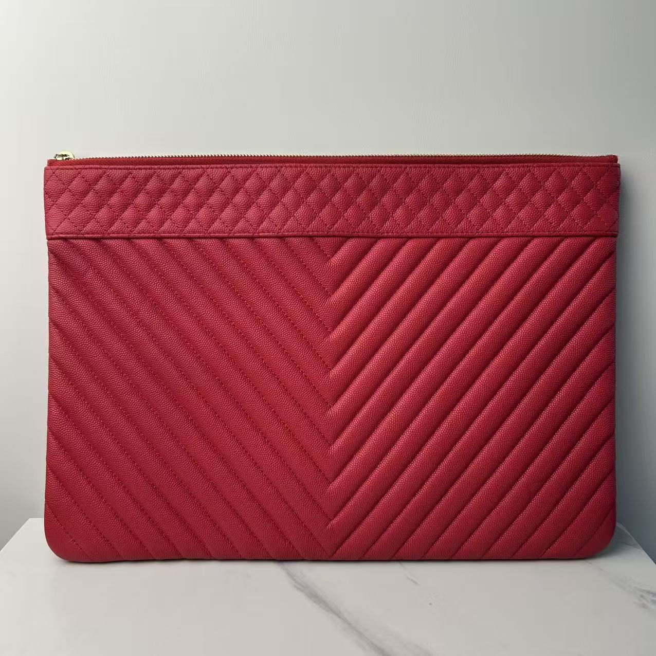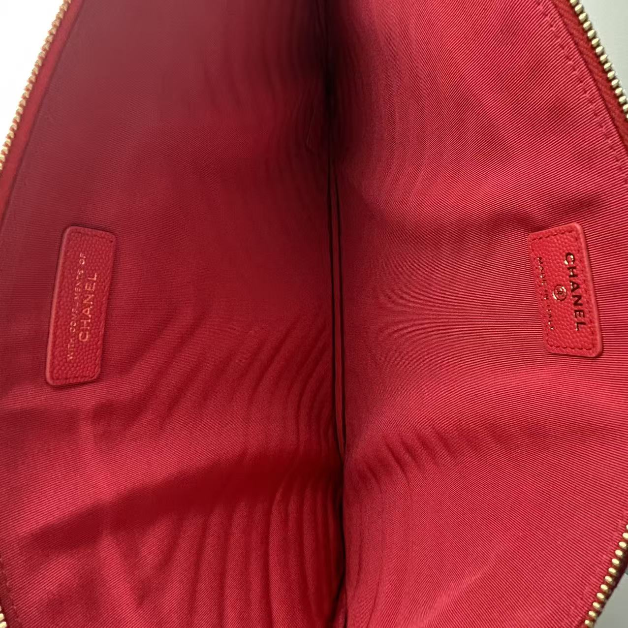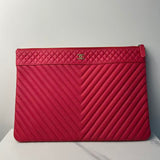 CHANEL Caviar Chevron Quilted Large Cosmetic Case Red