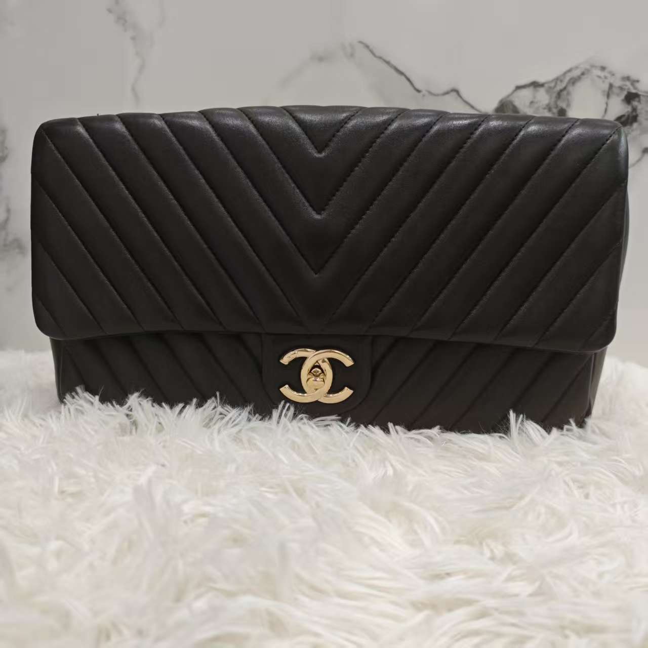 The Chanel Chevron Flap Bag embodies refined elegance with its signature chevron quilted design, offering a sophisticated update to the classic flap silhouette. Crafted from premium leather and featuring the iconic CC turn-lock closure, this bag balances timeless style with practical function. Its versatile size and interior compartments provide organized storage, making it an essential accessory for both formal occasions and everyday luxury. Elevate your collection with this expertly crafted piece that delivers lasting value and distinctive Parisian craftsmanship.