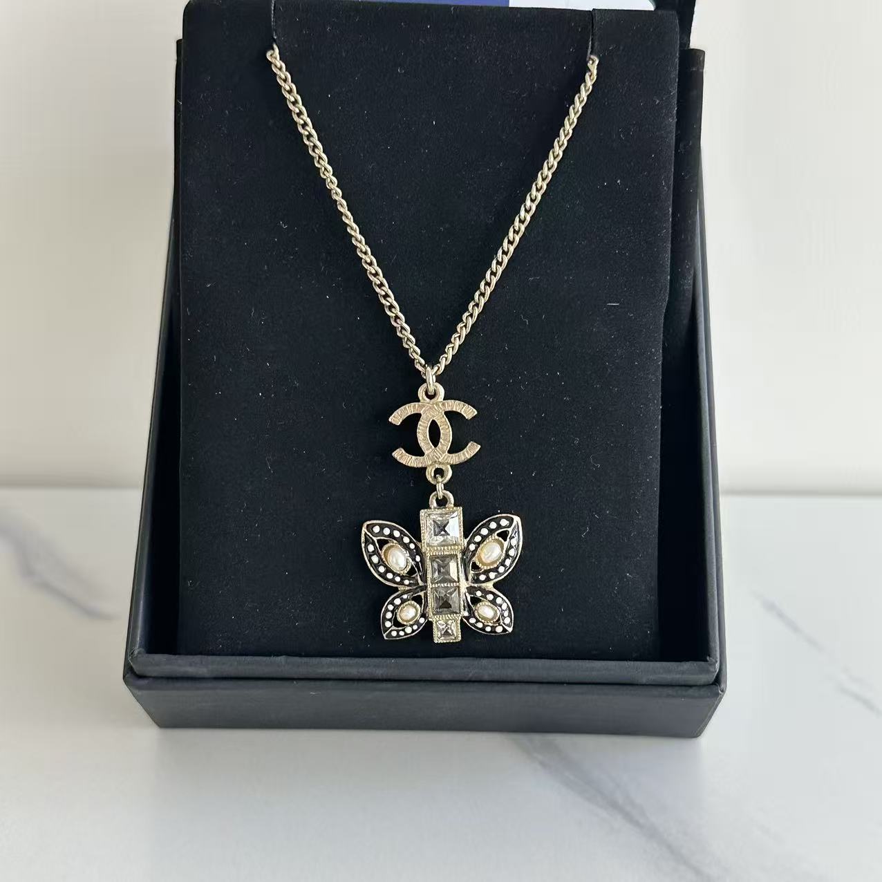 Elevate your accessory collection with the CHANEL Crystal Pearl CC Butterfly, a sophisticated design that combines the timeless elegance of pearls with sparkling crystal accents. This piece showcases the iconic CC logo intertwined with a delicate butterfly motif, reflecting exquisite craftsmanship and luxurious detail. Perfect for adding a refined statement to any ensemble, it captures CHANEL’s signature blend of classic style and modern charm.