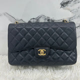 The Chanel Double Flap Jumbo in black exemplifies timeless elegance combined with spacious design. Crafted from luxurious quilted leather, this iconic bag features the signature double flap for secure storage and organized access. Its larger size accommodates everyday essentials effortlessly, making it ideal for both formal occasions and daily use. With classic gold-tone hardware and the unmistakable CC turn-lock, this piece elevates any ensemble while providing durability and style. A true collector’s item, it blends heritage craftsmanship with practical luxury.