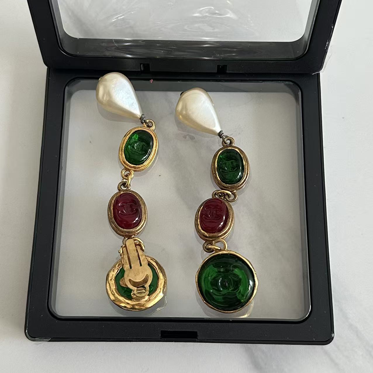 Elevate your style with these Chanel Earrings featuring a sophisticated blend of green, red, and white tones. Expertly crafted to showcase the iconic elegance of the brand, these earrings add a vibrant yet refined touch to any ensemble. Their distinctive color combination enhances versatility, making them a perfect accessory for both daywear and evening occasions. Designed for those who appreciate timeless luxury with a modern twist.