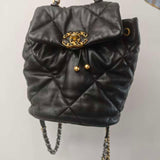Elevate your luxury collection with the CHANEL Lambskin Quilted Chanel 19 Backpack in Black. Crafted from supple lambskin leather featuring the iconic quilted pattern, this backpack combines timeless elegance with practical design. Its refined silhouette and adjustable straps provide comfort and versatility, perfect for sophisticated urban living. The blend of classic aesthetics and modern functionality makes it an essential piece for discerning fashion enthusiasts seeking both style and convenience.