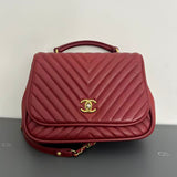 The CHANEL Lambskin Reverse Chevron Quilted Round bag combines timeless elegance with sophisticated craftsmanship. Made from supple lambskin leather featuring a distinct reverse chevron quilting, this bag offers a refined texture that enhances its luxurious appeal. Its rounded shape provides a modern silhouette while maintaining practicality for everyday use. Ideal for those who appreciate classic design reinterpreted with subtle innovation, this piece embodies CHANEL’s commitment to quality and style.
