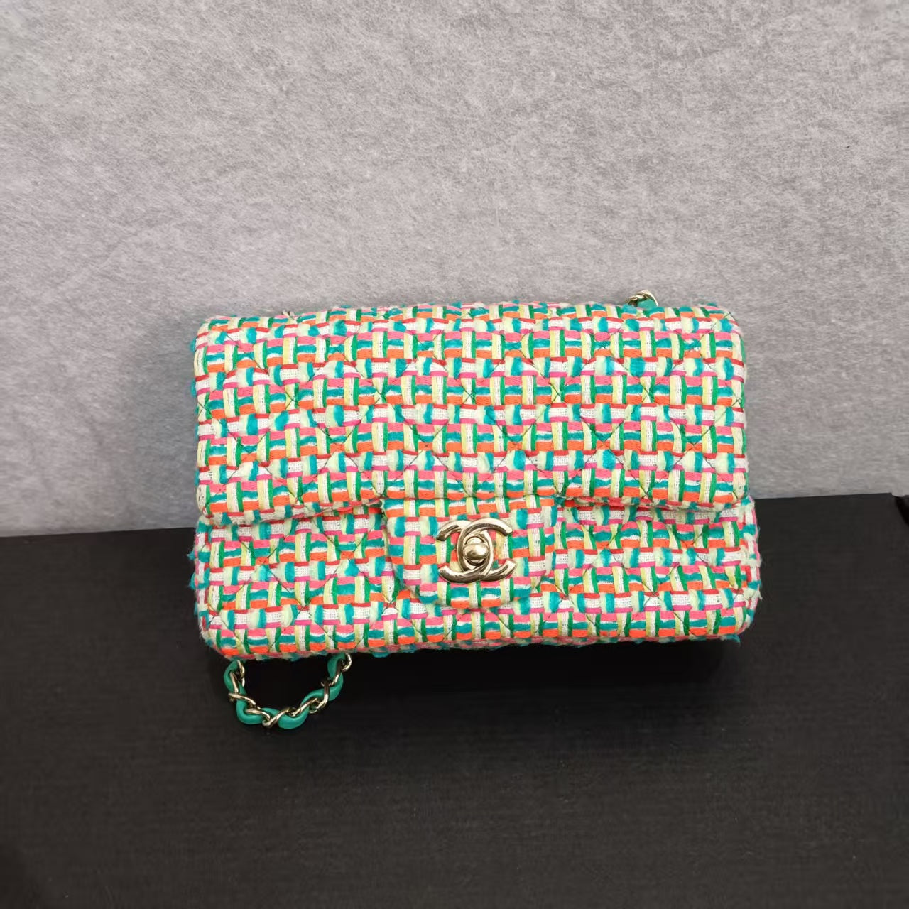CHANEL Tweed Quilted Medium Double Flap Multicolor Green