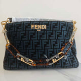 The Fendi O'Lock handbag in blue combines timeless elegance with modern design. Crafted with premium materials, it features the signature O'Lock closure that enhances security while adding a distinctive aesthetic. Its compact yet spacious interior is perfect for carrying essentials with sophistication. This handbag is an expert choice for those seeking a versatile accessory that seamlessly elevates both casual and formal wardrobes.