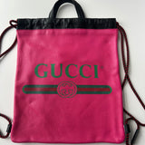 Gucci Pink Leather Logo Print Drawstring Backpack