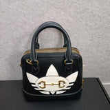 The Gucci x Adidas Horsebit Handle Bag in leather seamlessly combines iconic elements from both brands, showcasing superior craftsmanship with its smooth leather construction. Featuring the signature Gucci horsebit detail, this top-handle bag offers a refined silhouette ideal for sophisticated everyday use. Its structured design and premium materials ensure durability while enhancing style, making it a distinguished accessory for collectors and fashion connoisseurs alike.