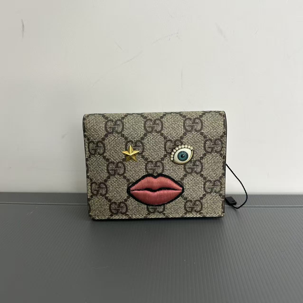 GUCCl GG Supreme Monogram Face Embroidered Card Case